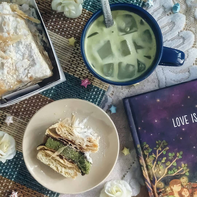 A yummy green tea combo: Esprecielo Allure Vanilla Green Tea Latte (which I got from winning the giveaway on their Instagram) and Choco Green Tea Surabaya Snowcake (IDR 59k).